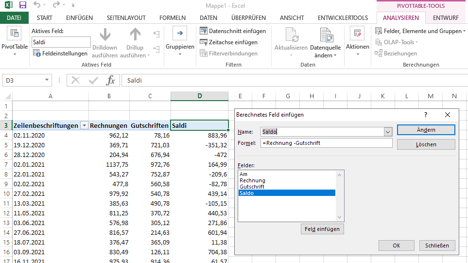 Pivot: bei Summen die Belegart berücks.